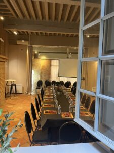L’immense table de réunion peut-être transformée en table de banquet pour 20 personnes.